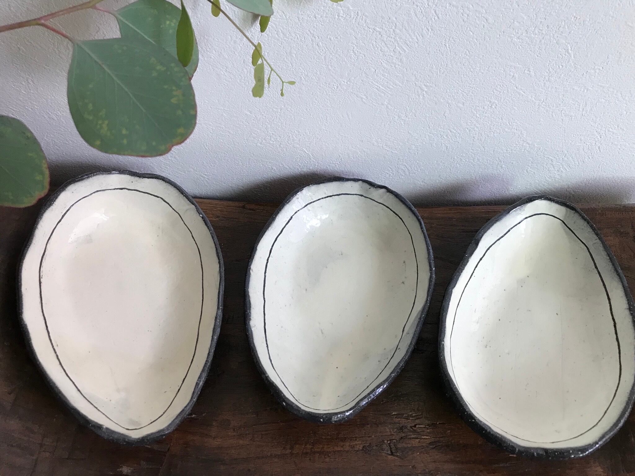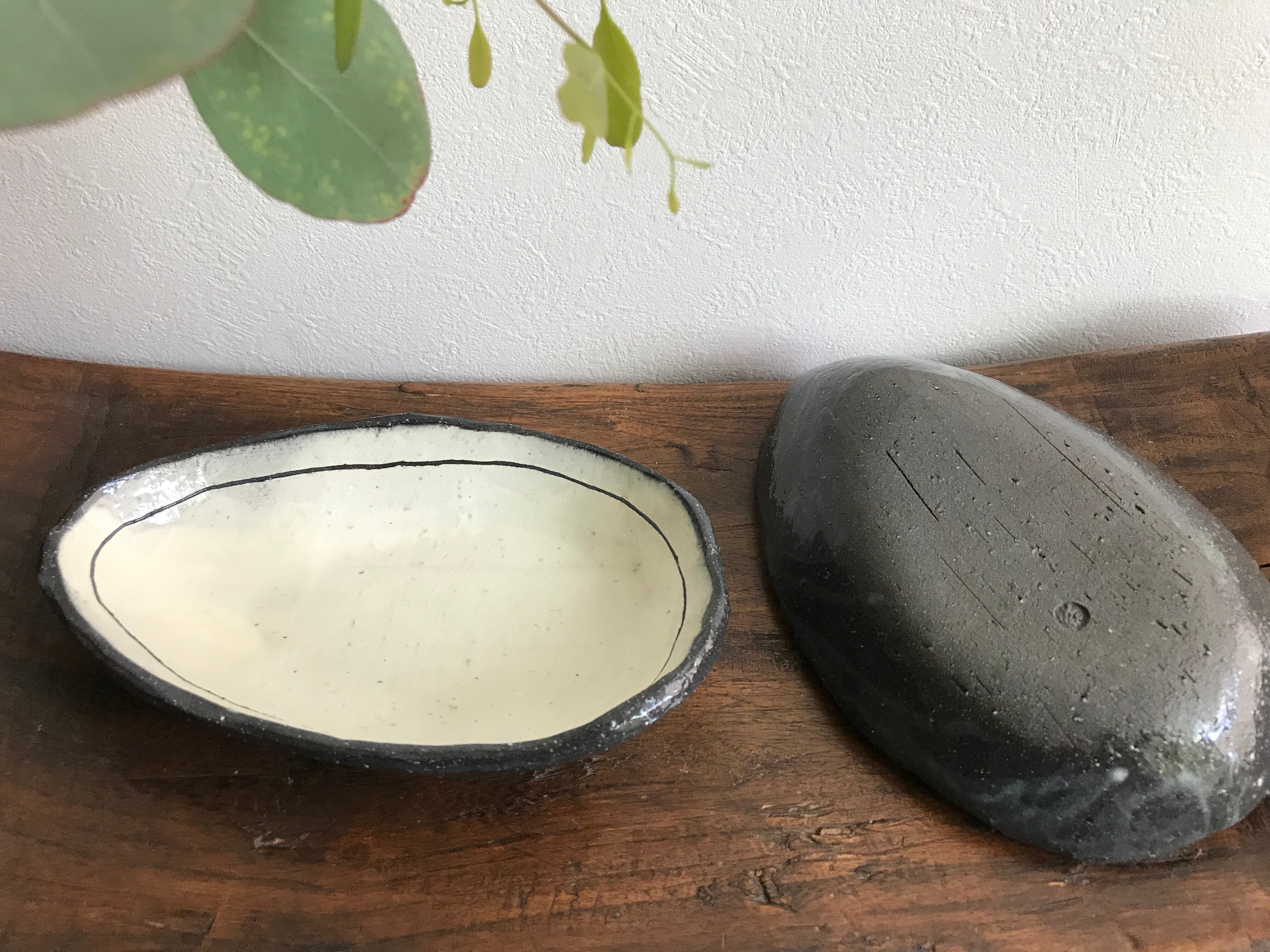 縦 約19cm 横 約13cm 高さ 約3.5cm 卵型のコロンとしたお皿です。